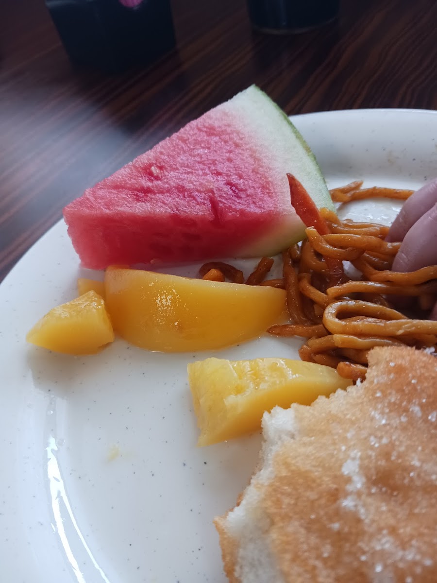 Food selection was good and hot. Seating is outdated but manageable. Tables and floor clean along with well stocked food bar. No complaints